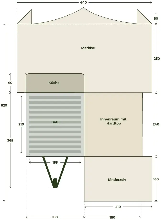 | Dimensions fermé (avec cuisine) | 425 x 180 cm |
