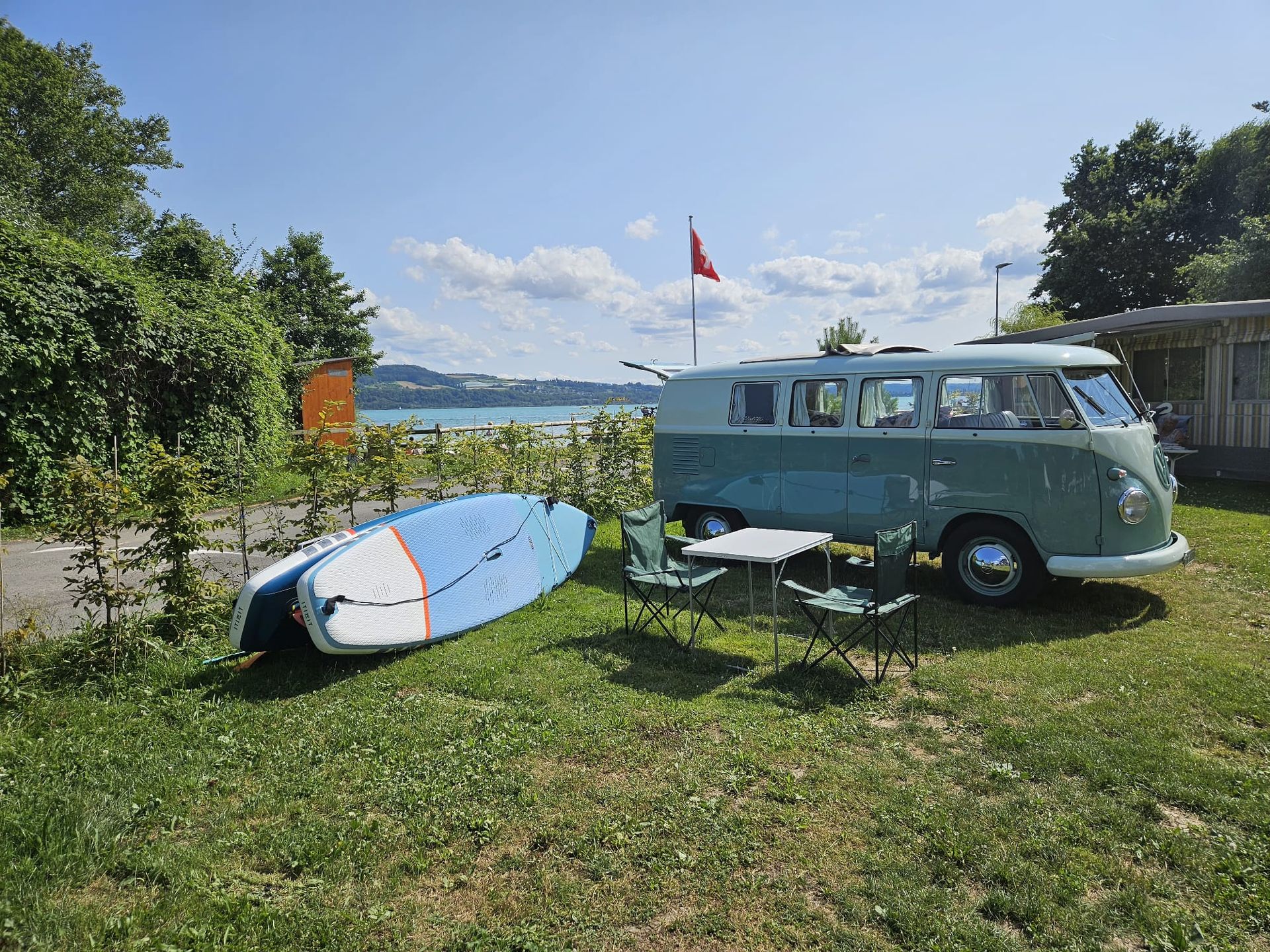 Le camping Les Pins est situé à 2 km du village médiéval de Grandson, dans un cadre calme et à deux pas d'une réserve naturelle. Niché au bord du lac de Neuchâtel, il se situe à 430 mètres d'altitude et dispose d'une magnifique plage.